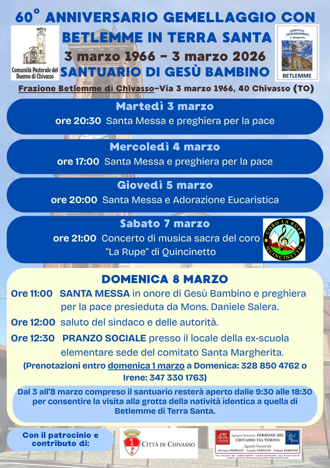 Manifestazione della Comunità Pastorale del Duomo di Chivasso e del Comitato festeggiamenti Santa Margherita di Betlemme, con il patrocinio della Città di Chivasso, in occasione del 60° anniversario del gemellaggio religioso con Betlemme di Palestina