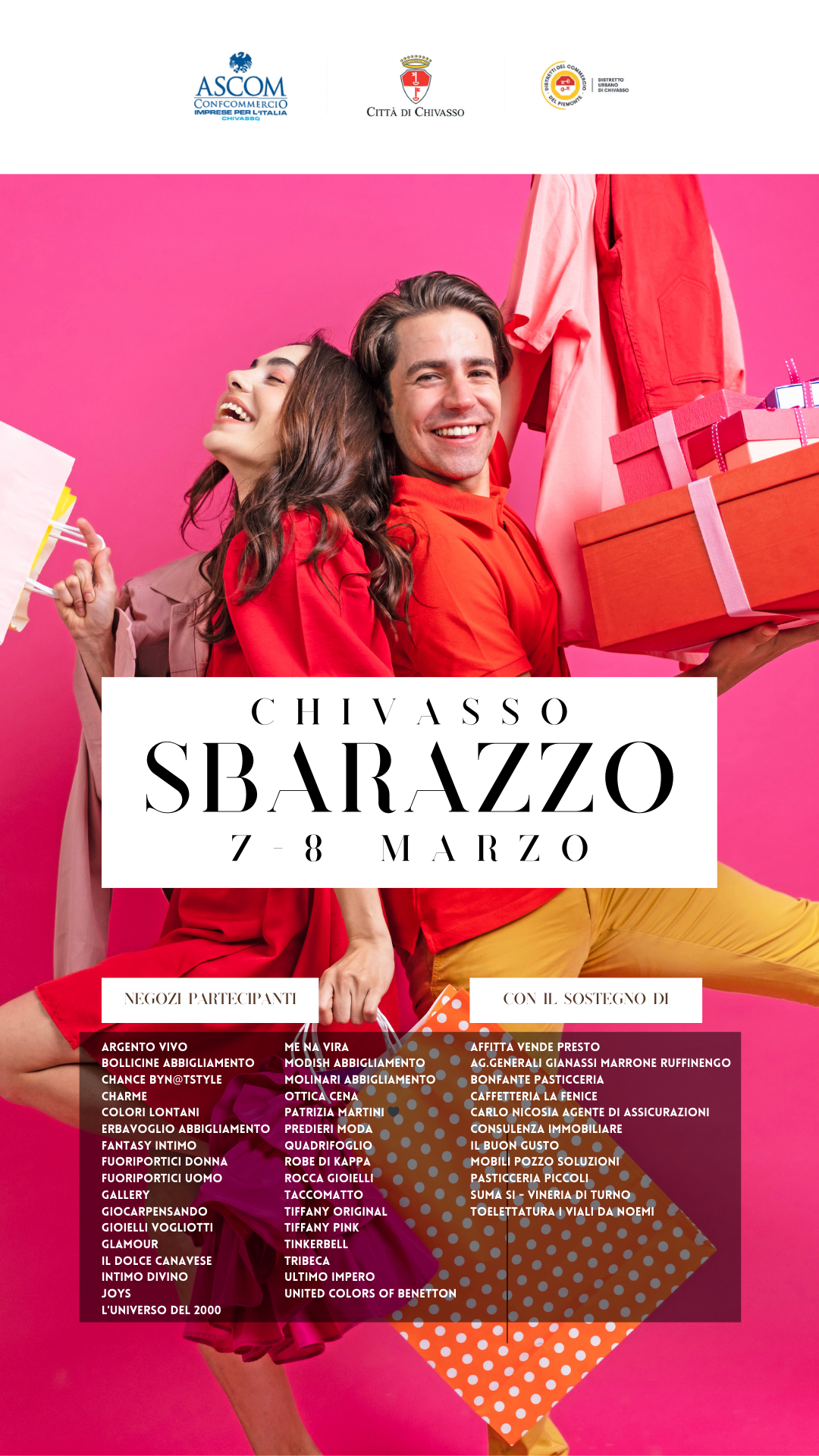 L’iniziativa, organizzata da Ascom Confcommercio Chivasso con il patrocinio della Città di Chivasso e la collaborazione del Distretto Urbano del Commercio, coinvolgerà 45 attività commerciali pronte a proporre le migliori occasioni di fine stagione insieme alle prime novità primaverili.